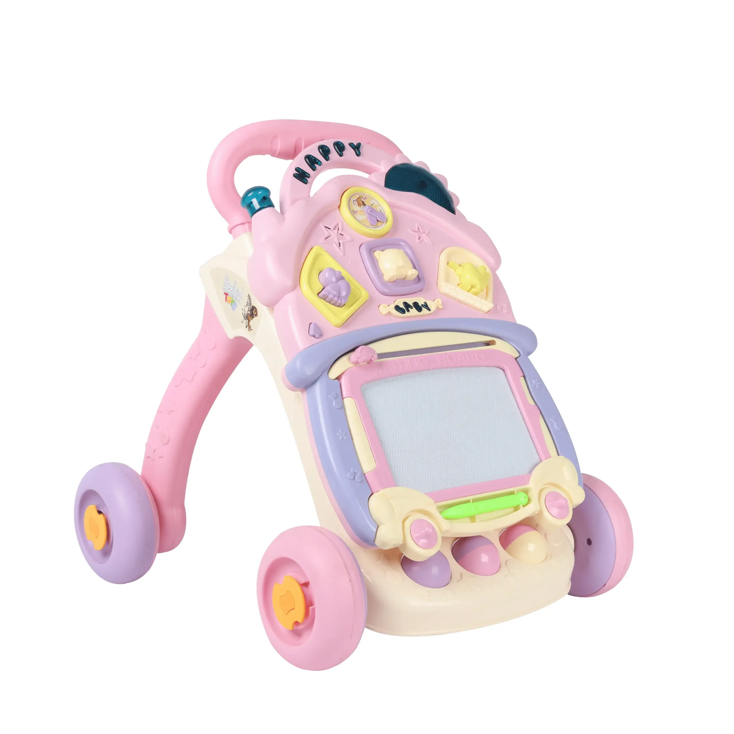 • Educational Elements – Includes shape sorters, Writing pad/ Piano activity, and number activities for early learning.