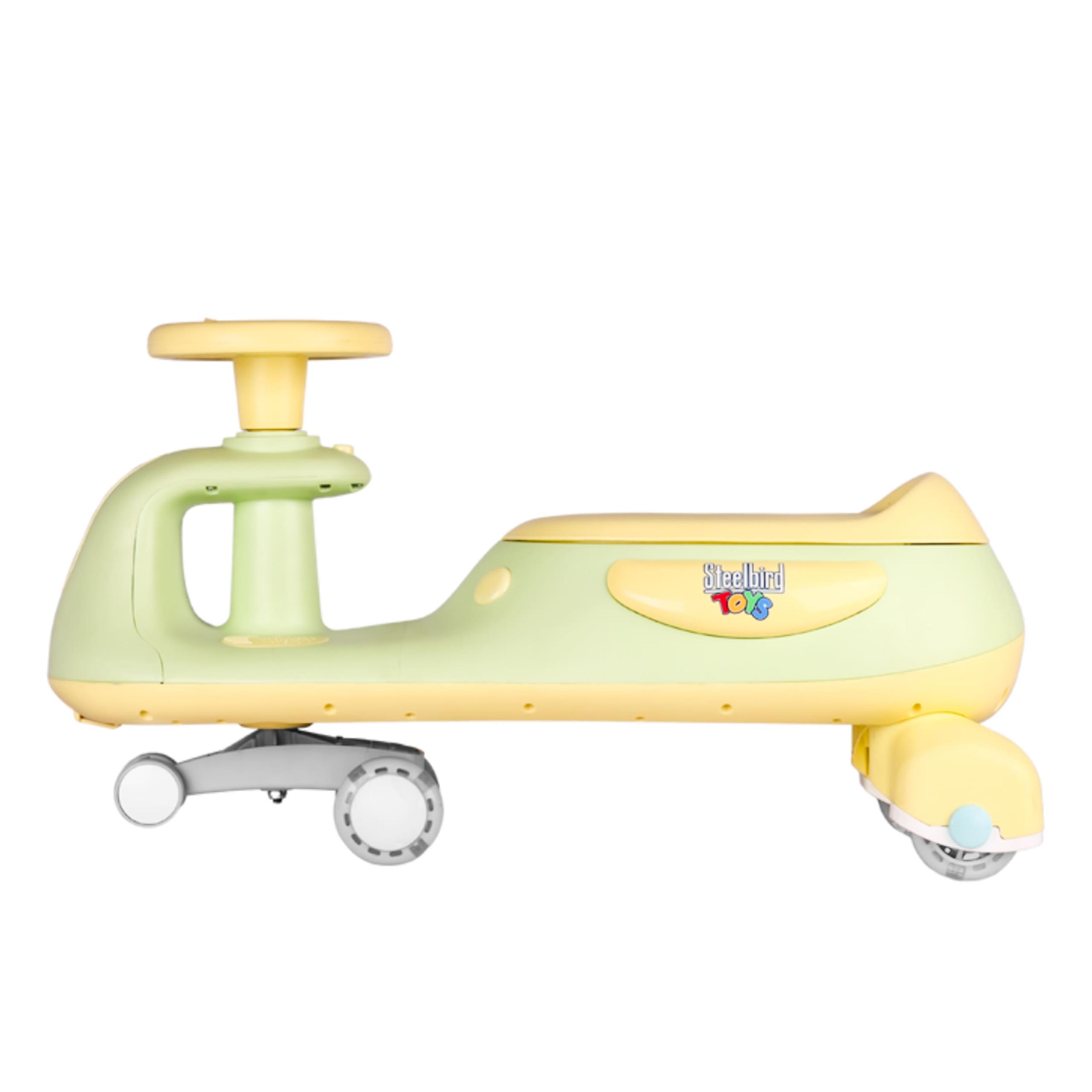 The Steelbird Mini Explorer Swing Car is a premium-style kids’ ride-on toy designed to entertain and engage children with dynamic lights, fun music, and smooth motion. Built for toddlers and young kids, this compact swing car blends eye-catching features with safe and simple play mechanics that keep little riders smiling.